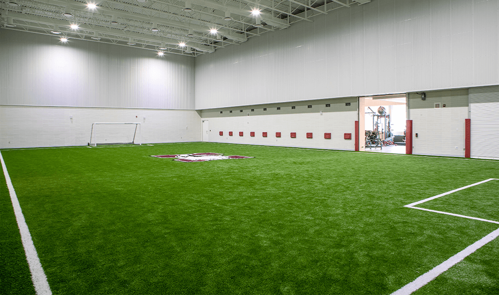 6600 sqft turf gym. Lined for 5v5 soccer. Other activities include dodgeball, spikeball and training provide by McMaster Performance.