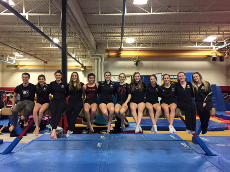 Recreational club of gymnasts gather multiple times a week to practice the sport and socialize together.